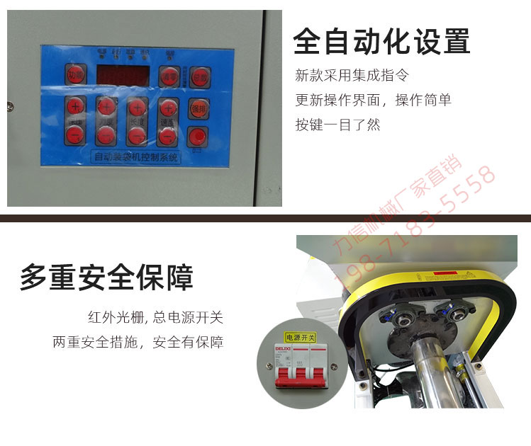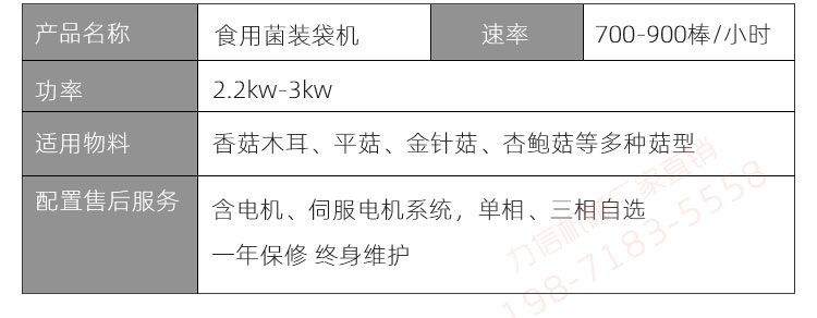 力信機械食用菌裝袋扎口一體機/自動裝扎一體機,一鍵操作,簡單方便。裝袋區采用電腦程控自動裝袋機,裝袋完成后直接送入扎口區,自動進行扎口作業,扎口完成后由機械手送出,一體化操作,自動化程度高,將復雜的工序簡單化,省時又省力。